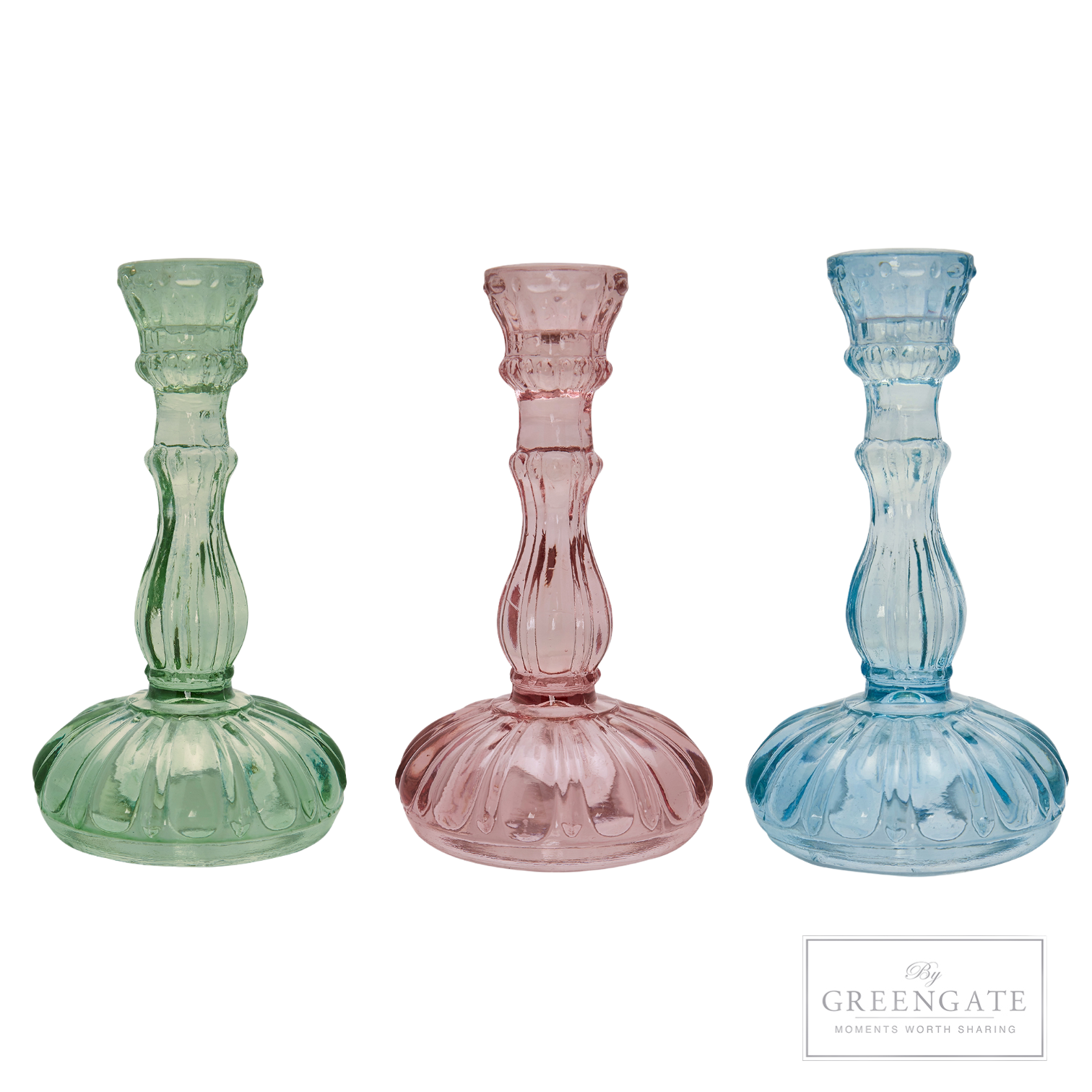 Kerzen blau, Kerzen gelb, Kerzen lila, Kerzen rosa, Kerzenhalter blau, Kerzenhalter grün, Kerzenhalter rosa